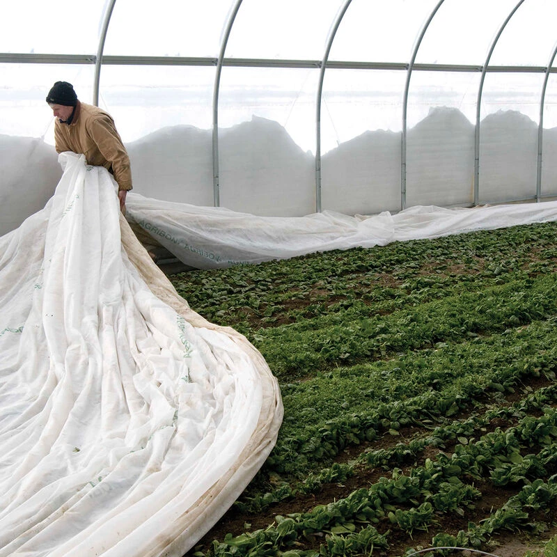 Frost protection down to 28°F/-2°C. The most versatile fabric weight. Extend your growing season in spring by placing over transplanted crops such as brassicas and cucurbits. Cover crops immediately after transplanting or direct seeding and enjoy numerous benefits including: Organic pest control, water conservation by reducing evaporation, reduced erosion, faster germination, and ultimately INCREASED YIELDS. Use with hoop supports over plants such as peppers whose growing points project against the fabric. Use again in the fall to further extend your season for later planted crops. Can also be used in multiple layers for overwintering in unheated high tunnels or under plastic in outdoor overwintered low tunnels. 85% light transmission. 0.55 oz./sq.yd.