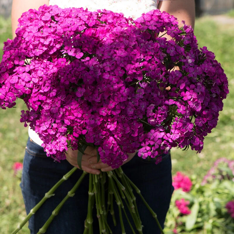 These brilliantly colored beauties bloom the first year and produce 5β7 stems that can reach 36″. The stems are thick, strong and glossy green, supporting huge, bright, vibrant purple blooms. Long vase life. Tender perennial in Zones 6β8. Best grown as an annual.