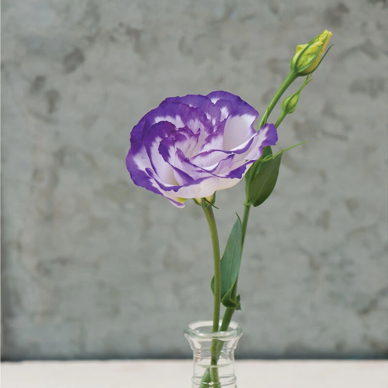 2–3″ fully-double flowers are white with contrasting, dark blue rim. We chose the Arena series as a later-flowering group 3 (main season) series that can be planted along with an earlier group 2 series, such as the Mariachi series, for a staggered harvest. When planted at the same time, Arenas start to bloom approximately two weeks after Mariachis. Group 3, for late spring, summer, and fall harvest. Lisianthus is also known as prairie gentian, Texas bluebell, and showy prairie gentian. Pelleted seeds.