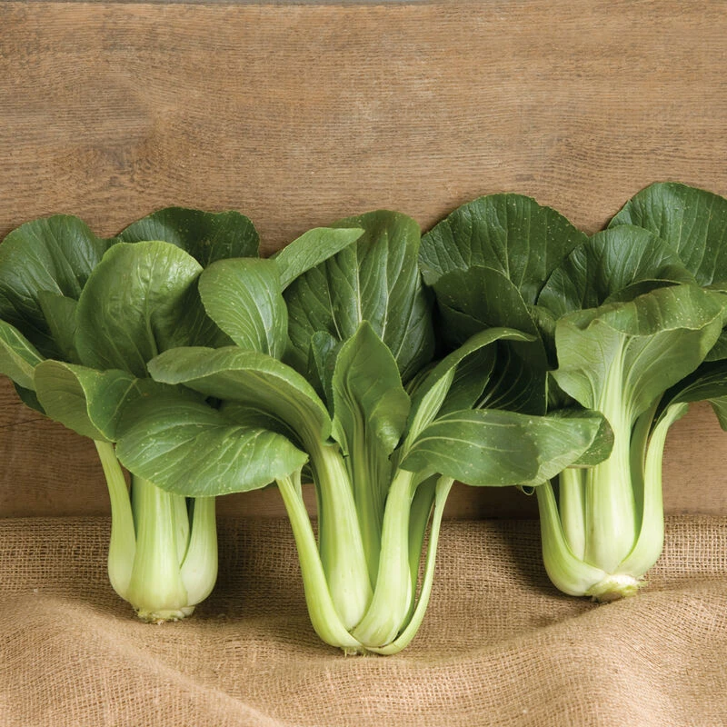 Broad, flat, light green petioles are topped with oval, dark green leaves. Best for full size, but also suitable for mini heads. Slightly smaller in size (10-12″) and a complement to the white-stemmed Joi Choi. Very slow-bolting.