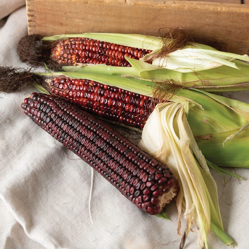 The perfect dry corn to scare you, your children, and all your friends come Halloween. Imposing 11′ tall plants produce 8–10″, medium-to-dark, blood red ears. Great for making red flour, cornmeal, and for roasting when fresh. Popular as a base for sour mash whiskey. Avg. 1–2 ears/stalk.