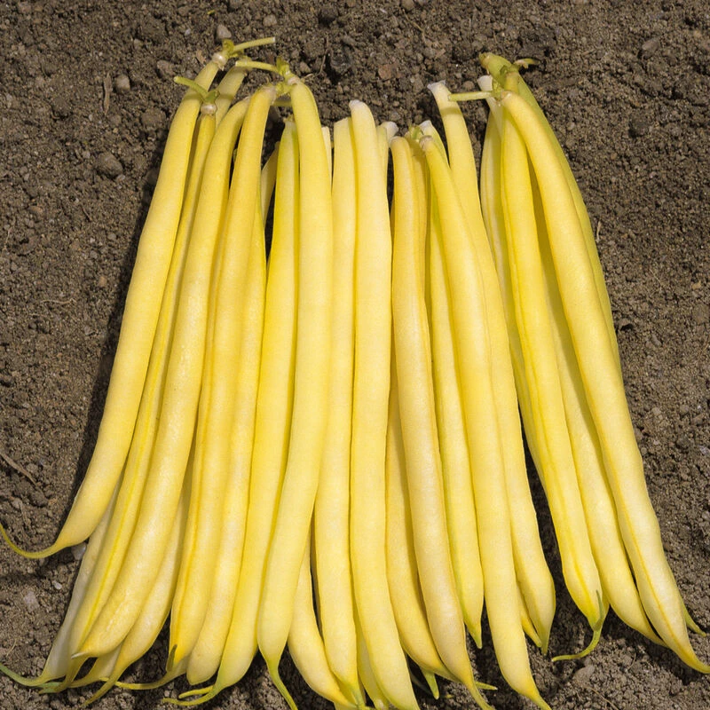 Yellow pods avg. 4 1/2–5″ long and mature in a concentrated set for more predictable harvests. High bean placement on upright, lodge-resistant plants makes for easier picking. Compared to Goldilocks, Borsalino has slightly smaller, thinner beans for a more refined appearance. White seeds. Bush bean.