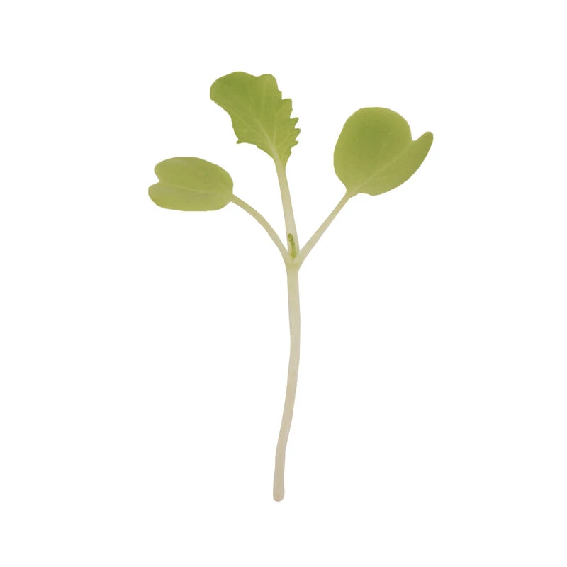 One of our fastest-growing microgreens! Pale green color blends well and beautifully complements dark green and dark red varieties in mixes. Mild and earthy brassica flavor. Based on our yield trial, we recommend seeding 14 gm per tray at approx. 2 flats per oz of seed. Avg. days to maturity was 10 days when harvested at the first true leaf (as opposed to cotyledon) stage. Faster, more attractive, and easier to grow than Kogane, which it replaced.