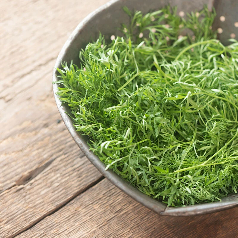 Lofty, feathery leaf structure for a pleasant texture when eating. Good cilantro flavor. Texture, flavor, and visual appeal are best when plants are young; so, we recommend Confetti for baby-leaf production rather than for full-size bunching. Makes a great garnish for Asian and Latin American cuisine. Chefs will love it! Looks great and makes for less chopping in the kitchen. A perfect addition to fish tacos.
