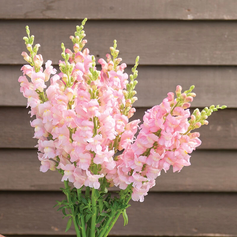 Robust stems, high-quality blooms, and uniform growth in the field or greenhouse. Group 2 snapdragon bred for performance under short days and low temperatures. We’ve found the Costa Series to be more adaptable than most Group 2 snapdragons, in that the plants produce strong stems and high-quality blooms even under slightly warmer and longer days than would be ideal for a Group 2 series. Costa performs well in our spring and fall trials both in the field and tunnel, and overwintered (fall-planted inside an unheated tunnel for early spring flowering). Flower quality and stem quality are reduced under long days and high temperatures. Costa Light Rose II is slightly shorter and more compact compared to other Costa varieties in this series. Flowering time, bloom quality, and stem quality are consistent with the rest of the Costa II Series.
