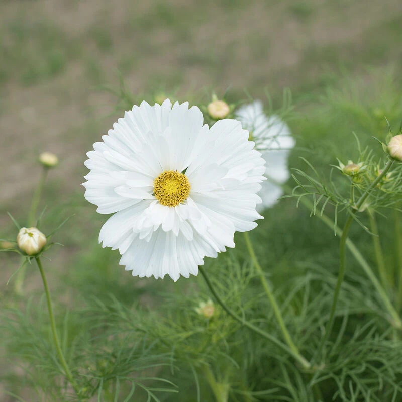 Large 2 1/2β4″ pure white blooms. A semidouble or double flower appearance is achieved by Fizzy White’s overlapping petals and tufted centers. The petals have lovely, fine pleats and zigzag edges, reminiscent of crisply pressed and pinked linens.