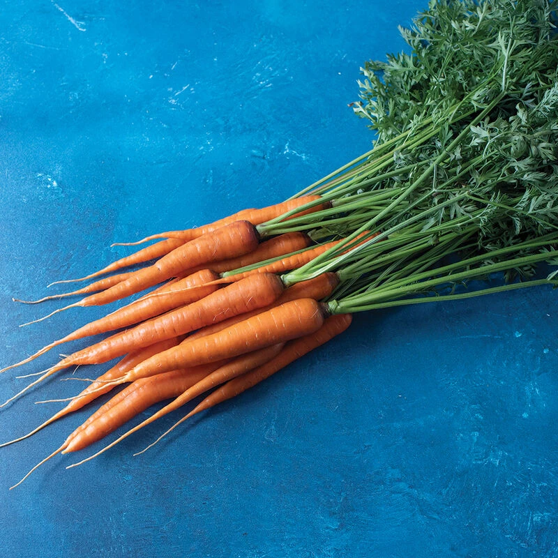 Cone-shaped, 6 1/2–7″ long roots with good eating quality from summer or fall harvest. Stores well. Performs especially well in shallow, heavy, or rocky soils where growing longer carrots can be challenging. Strong, medium-tall tops. Kuroda x Chantenay type. Also available with NOP-compliant pelleting.
