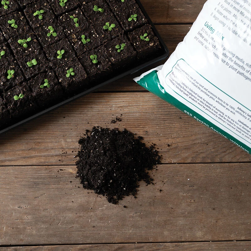 A custom mix of humus (black) peat moss, sphagnum peat moss, compost (composted poultry manure and by-product, hardwood shavings/sawdust, elemental sulfur; crop residue, and/or seaweed), horticultural perlite, fish meal, and seaweed meal. A great option for growing seedlings in cell trays and soil blocks with ample nutrients to carry most plants from seeding to transplant. Approved by MOFGA for use on MOFGA certified-organic farms. Available in three sizes.