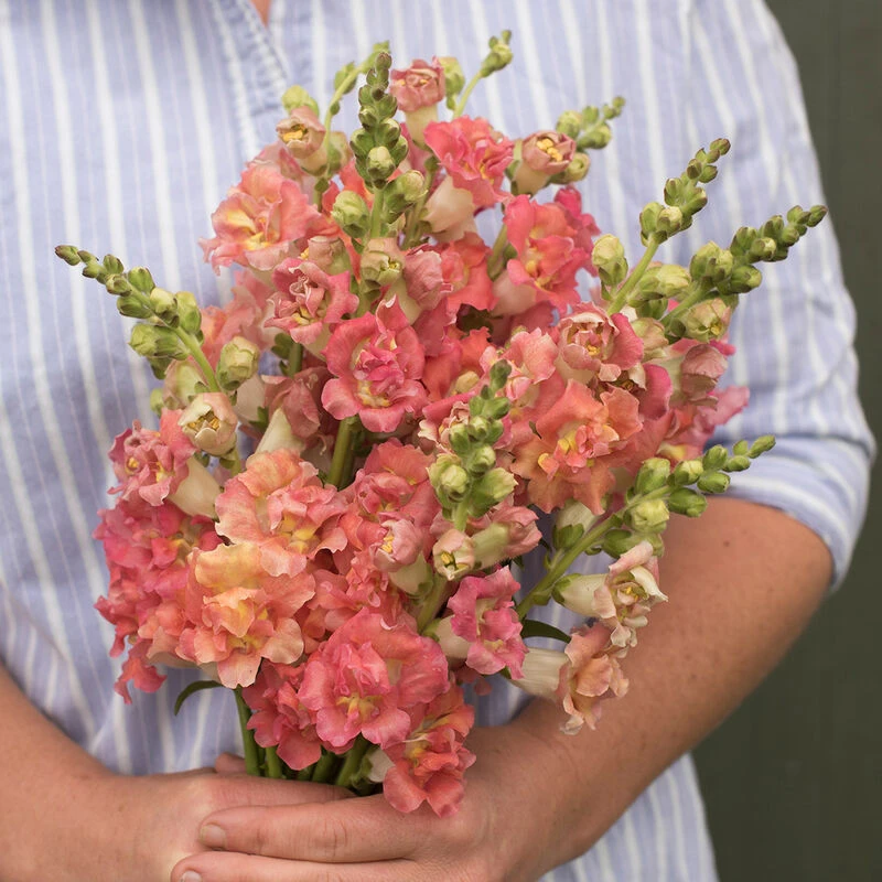 Also known as an azalea type, Madame Butterfly’s double petals create full, fluffy blooms for a Victorian look. A beautiful flower with white-throated trumpet and salmon bronze-colored petals. For outdoor or greenhouse production. Bloom time comparable to group 3–4 “main season” or “all season” varieties.
