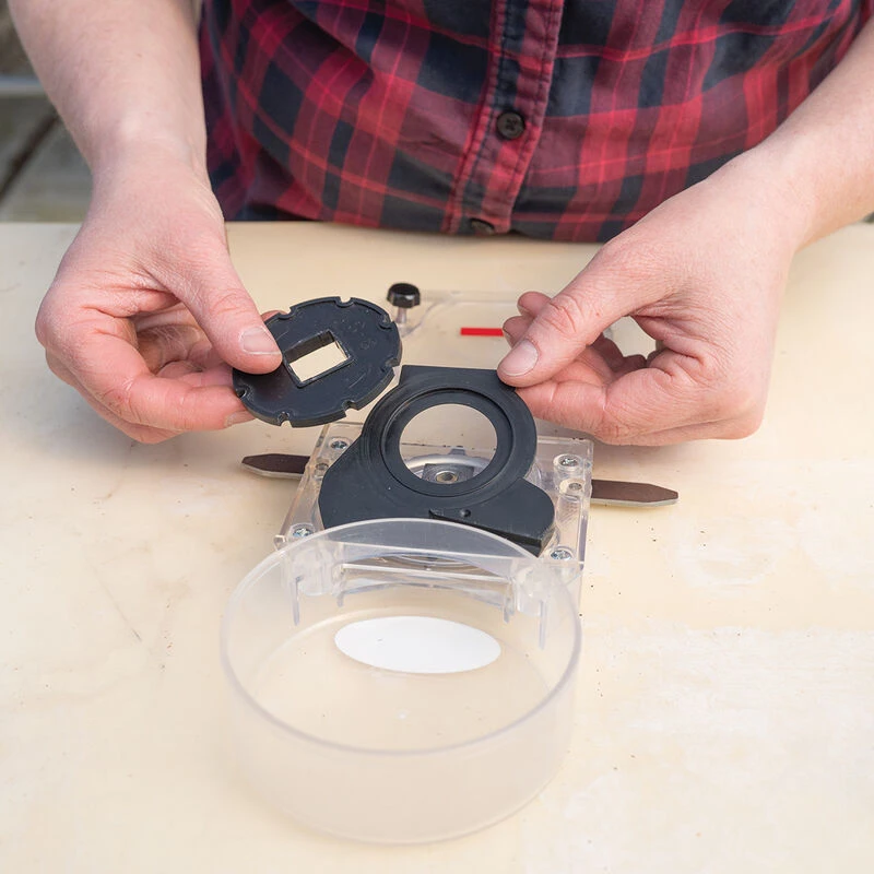 Includes the seeder and four (4) custom plates and plate bases (3S-8, S-8, L-8, and 2L-8) for sowing various seed sizes.