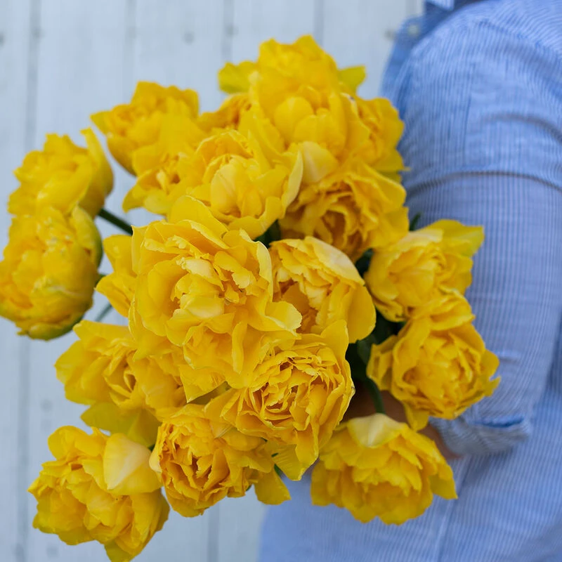 4–4 1/2″ lushly layered double blooms. Petals are slightly ruffled and feathered at the edge. A 2001 introduction and a sport of the ‘Verona’ tulip. Though Marie Jo is classified as a Double Early Tulip, it timed well with the Double Late-flowering group in our trials. 12 cm+ bulb size. 1 unit = 1 bulb. NOTE: Bulbs do not come pre-chilled; if growing in hardiness Zones 8–10, see growing information (below) for pre-chilling instructions.
