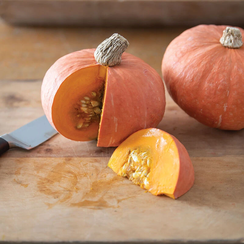Bred to satisfy the demand for smaller, premium-quality kabochas, Marmalade is ideal for small family dinners and tucks nicely into CSA boxes. Higher per-plant yield helps growers achieve better profits in direct-market sales. All the hallmarks of a Johnny’s-bred squash. Vibrant color option for late fall, with improved storage life compared to Sunshine. Avg. weight: 2–3 lb. Bred by Dr. Lindsay Wyatt at Johnny’s. USDA Certified Organic.