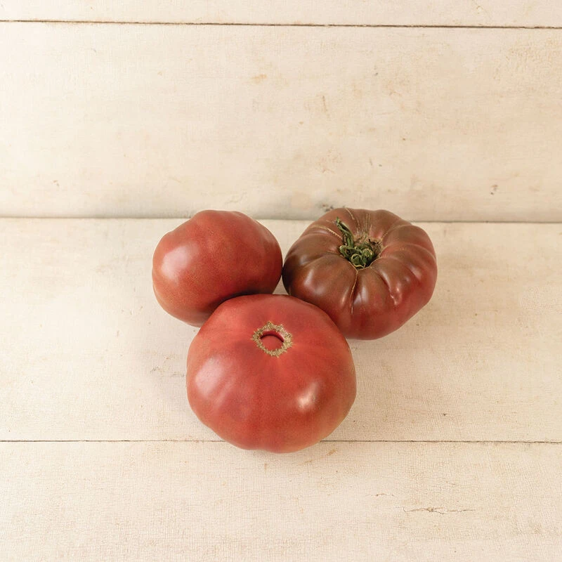 Firm, uniform, crack-resistant 10–16 oz. fruit combine a beautiful heirloom look with improved shelf life and impressive plant vigor. Vegetative early growth gives way to bountiful yields over a long haul. A significant improvement over Marnero in marketable yield and longevity, though less rich in flavor. Performs well in shorter daylength conditions. Indeterminate.