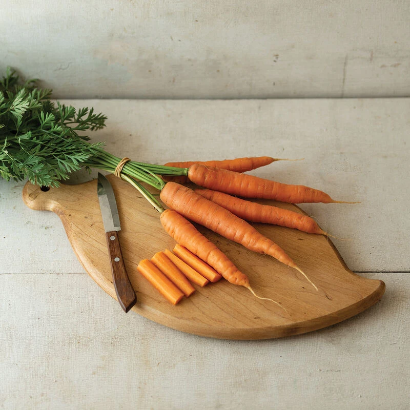 A highly marketable Nantes with excellent root appearance and quality. Similar to Yaya, but with later maturity and stronger, more upright, darker tops. Dark orange roots are 6โ7″ long with a small core. Excellent storage potential for a midseason variety.
