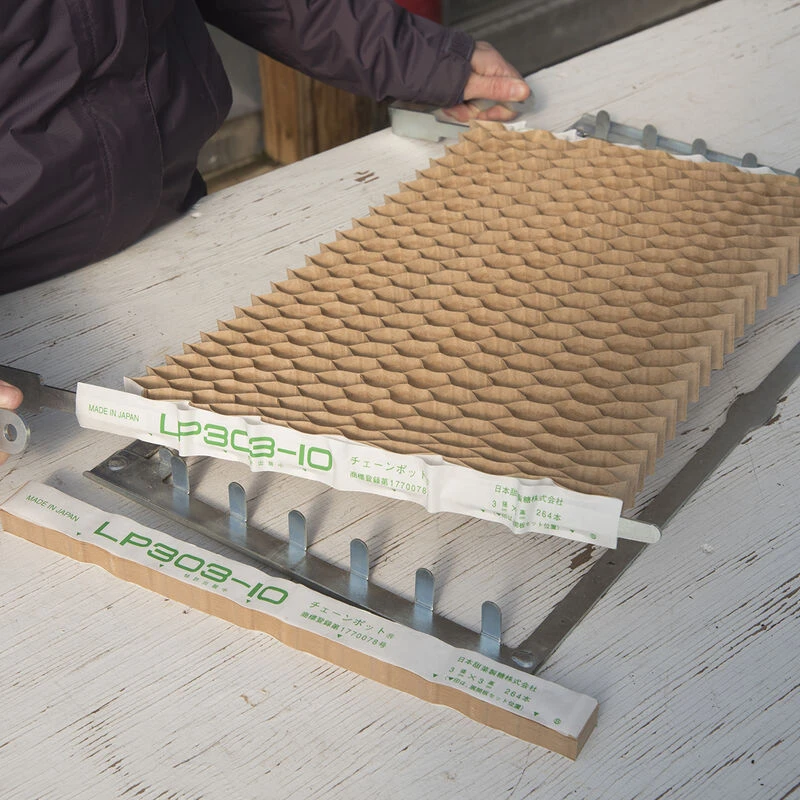 For use with our Paperpot Transplanter, these Paper Chain Pots are available in 2″, 4″, and 6″ in-row spacing, with chain lengths of approximately 45′, 90′, and 130′ respectively. 264 cells per compressed chain. Ideal for closely spaced crops like onions, leeks, scallions, and shallots. May also be used for chard, flowers, Asian greens, spinach, beets, cilantro, parsley, kohlrabi, lettuce, and greens mixes. Cells are small, 1.25 x 1.25″, so we do not recommend their use for crops typically grown in larger cells. NOTE: The Paper Chain Pots used with the Paperpot Transplanter are currently under review by the National Organic Standards Board (NOSB) and National Organic Program (NOP), pending approval. Please check with your local organic certifier for appropriate updates on the NOP review process.