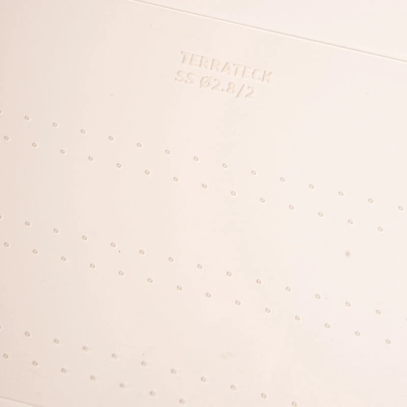 Interchangeable plate for Paperpot Seeder Frame. Drops 132 seeds in one motion. 2.8 mm holes configured in unique paperpot spacing. Clear plexiglass for easy sowing in paperpot trays. For seeding cabbage, cauliflower, kale, full-sized head lettuce (raw), phlox, and more. Use with 4″ Paper Chain Pots for growing seedlings to be transplanted at 8″ in-row spacing, and 6″ for seedlings to be transplanted at 12″ spacing. Other plate sizes available. Made in France by Terrateck. Frame required for use; sold separately.