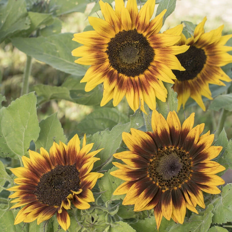 Unique bicolor flower pattern sets this beauty ablaze with autumn colors. Blooms average 5–6″ across, but with tight spacing will be slightly smaller. Stem length is 16–34″. Day-length neutral. Minimal pollen. Branching. AAS winner.
