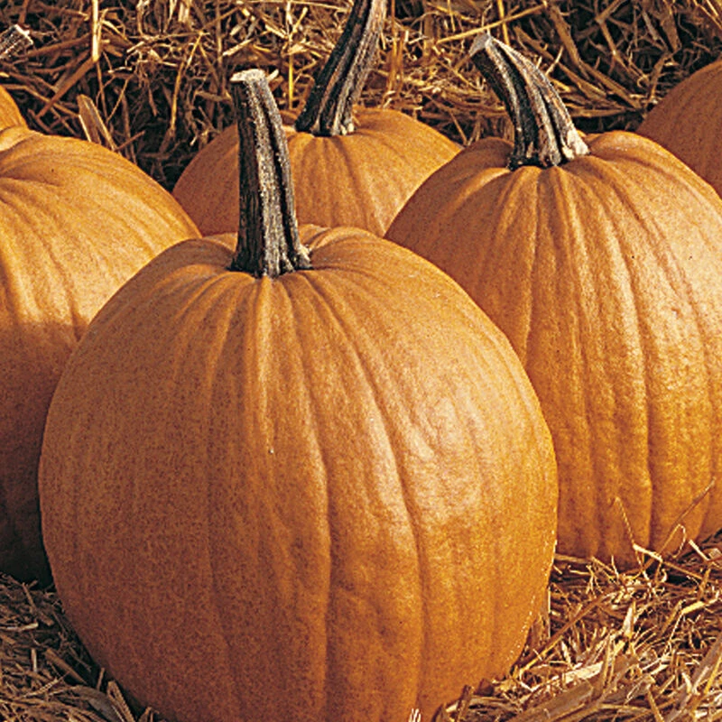Medium-size, avg. 12–20 lb. Upright-shaped with distinctive shoulder ribbing and slender, long, strong green handles. They ripen early to a solid, brilliant, deep orange color. Vigorous seedlings, long vines.