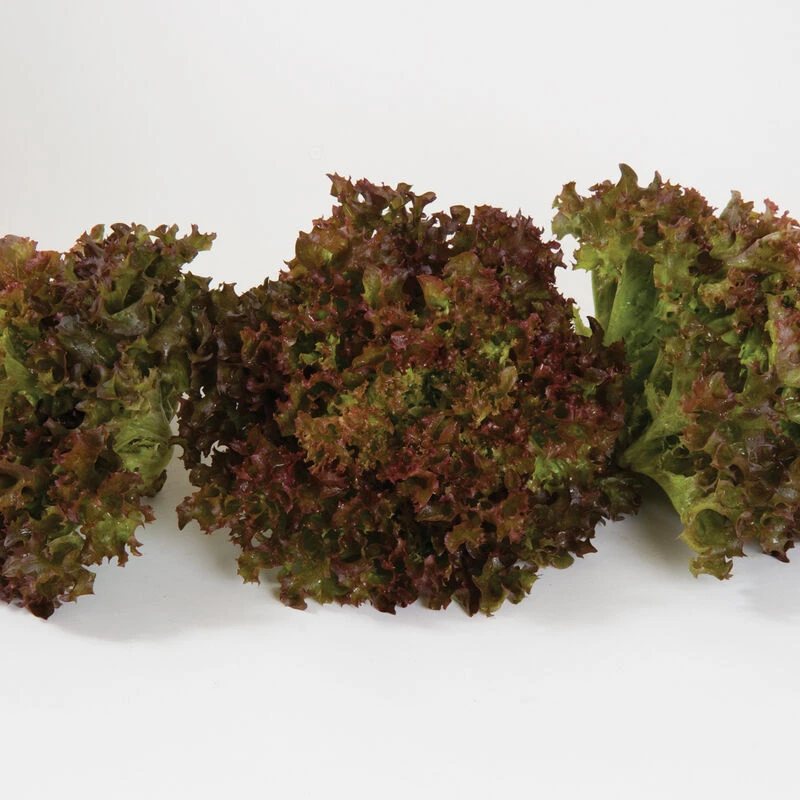 Deeply incised,double red leaves with heavily frilled margins. Good flavor is slow to turn bitter even after bolting. Pelleted seed.