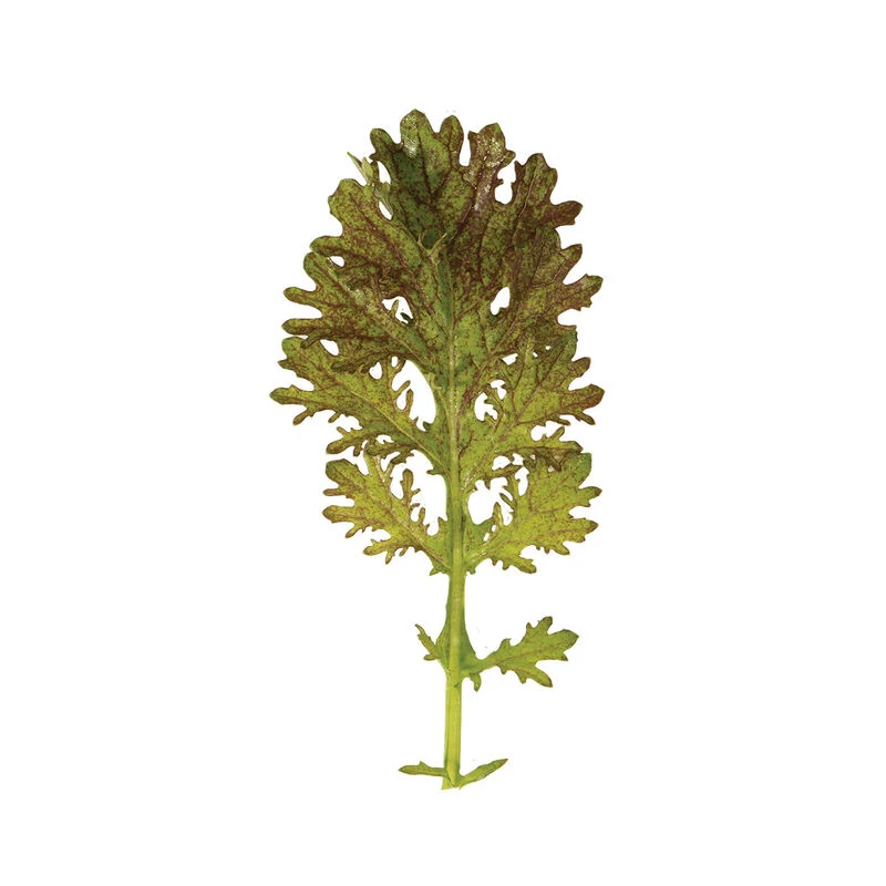 Spicy green and red, intricately lobed and ruffled leaves add flavor and loft to your salad mix. Slow-bolting. Darker red in cooler weather.