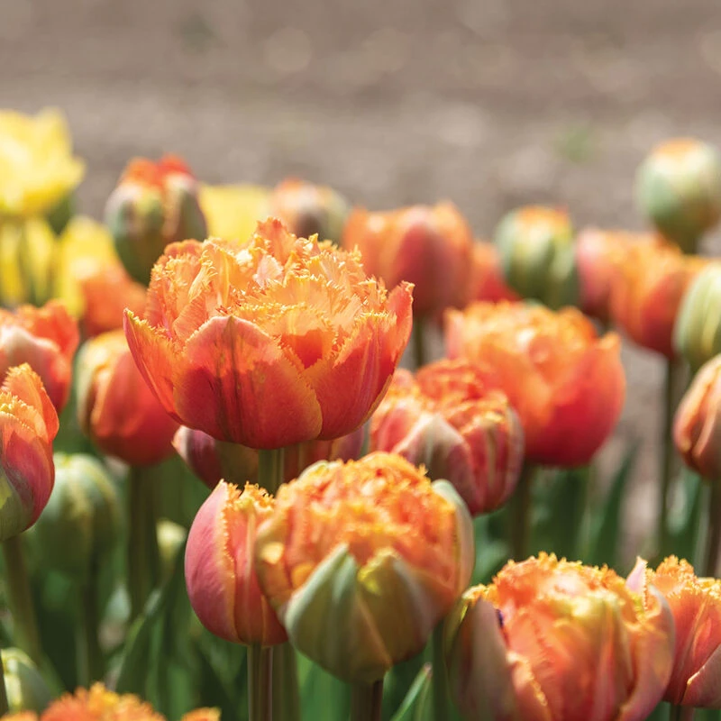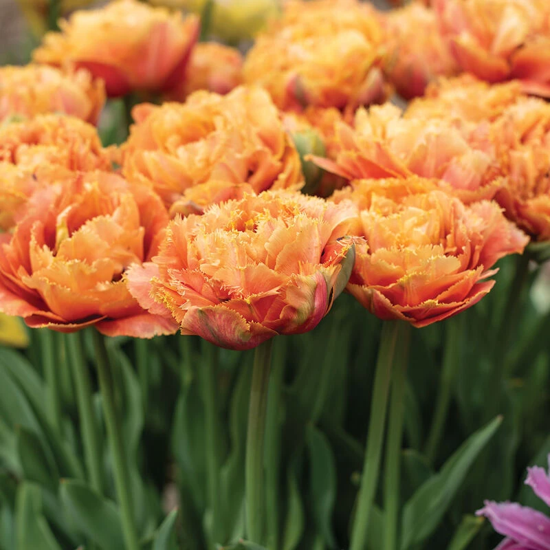 Immense 3β4″ bowl-shaped blooms β among the most “fully double” varieties we’ve seen in our tulip trials. Countless layers of petals in shades of apricot, rosy pink, and green which transition to a glowing peachy gold as the blooms mature. Delicately fringed petals. Very uniform in height and bloom size. Lightly fragrant. Sturdy stems. NOTE: Bulbs do not come pre-chilled; if growing in hardiness Zones 8β10, see growing information (below) for pre-chilling instructions.