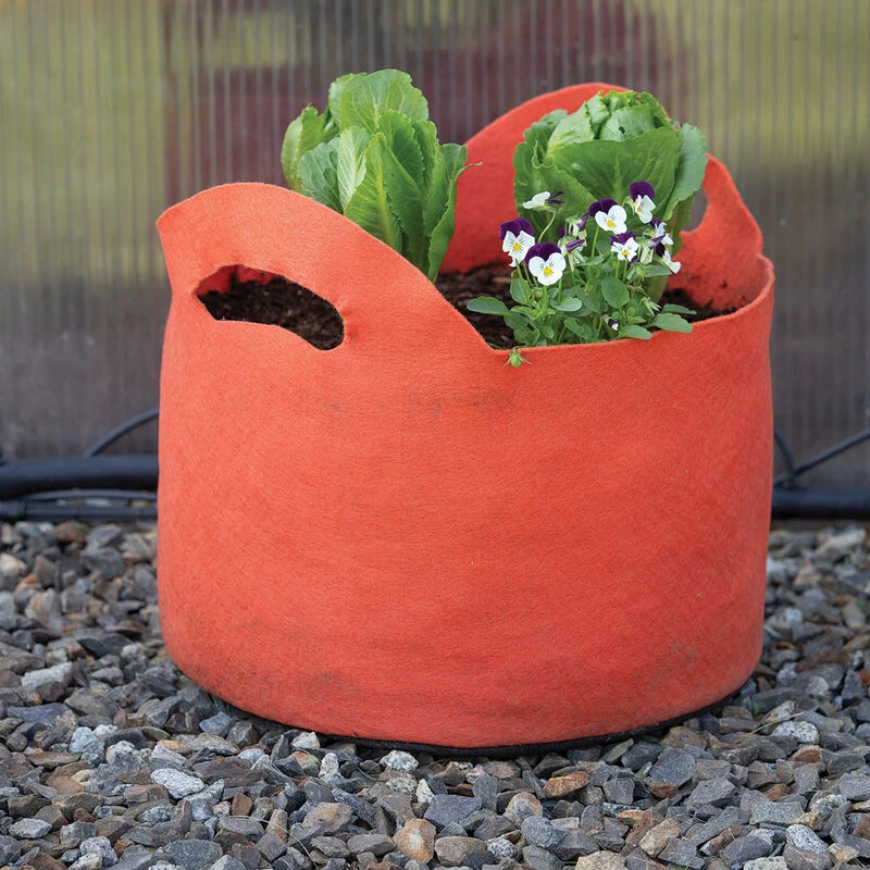 Grow healthy plants anywhere in these durable, reusable containers. 7-gallon capacity is recommended for lettuce, greens, and larger herbs. Unlike plastic plant pots, Smart Pot® fabric walls air-prune the roots, allowing more efficient moisture and nutrient absorption, while maintaining comfortable soil temperatures through evaporative cooling. Trusted by growers for over 30 years. Made of inert, porous, geotextile fabric. BPA and lead-free. Not compostable or biodegradable. Made in USA. 14″ diameter. 9.5″ tall. Media needed to fill: 0.85 cubic ft. Quantity: 1 pot. Other sizes and quantities also available.