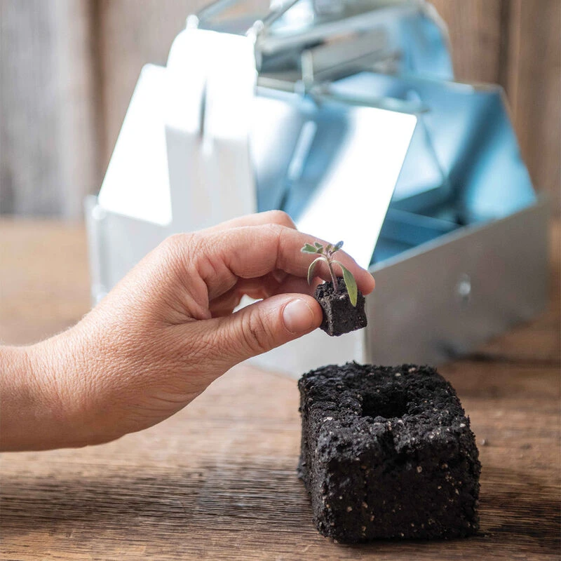 Ingenious in design, soil blockers compress the growing medium to form blocks that hold their shape. These blocks can then be seeded or transplanted into. This offers many benefits to the grower: