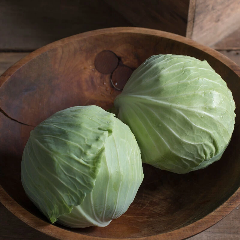 For fresh use, storage, and sauerkraut. Makes nice cabbage even under fertility or weather stress. Firms up in as few as 75 days for fresh use, continuing to enlarge to 4–8 lb. for mid-fall harvest. The solid heads have delicious, crisp leaves, and are capable of long-term storage into spring. Flavor is superior to the typical cabbages available at the supermarket. Developed by cabbage breeder Don Reed, Cortland, NY.