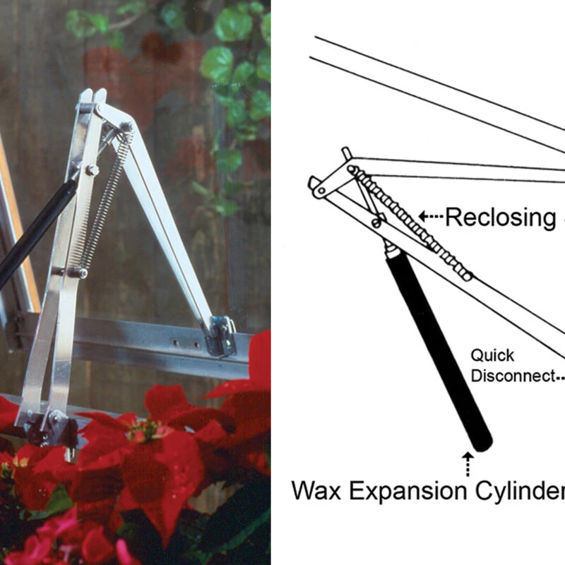 Temperature-responsive opener for greenhouse windows and traditional cold frames. Can be adjusted to open between 60Β°F/16Β°C and 77Β°F/25Β°C. Extends to 18″, lifts up to 15 lb. Made from corrosion resistant materials including aluminum and stainless steel. Quick-disconnect mounting bracket is especially useful when mounted on cold frames. Also appropriate for roof and wall vents. Winter Storage: It is recommended that your Univent – or at least the cylinder – is removed from your greenhouse or cold frame for the winter. Store it in a dry place and do not forget to lubricate the piston rod before remounting in the spring. Also check that the piston rod moves smoothly.